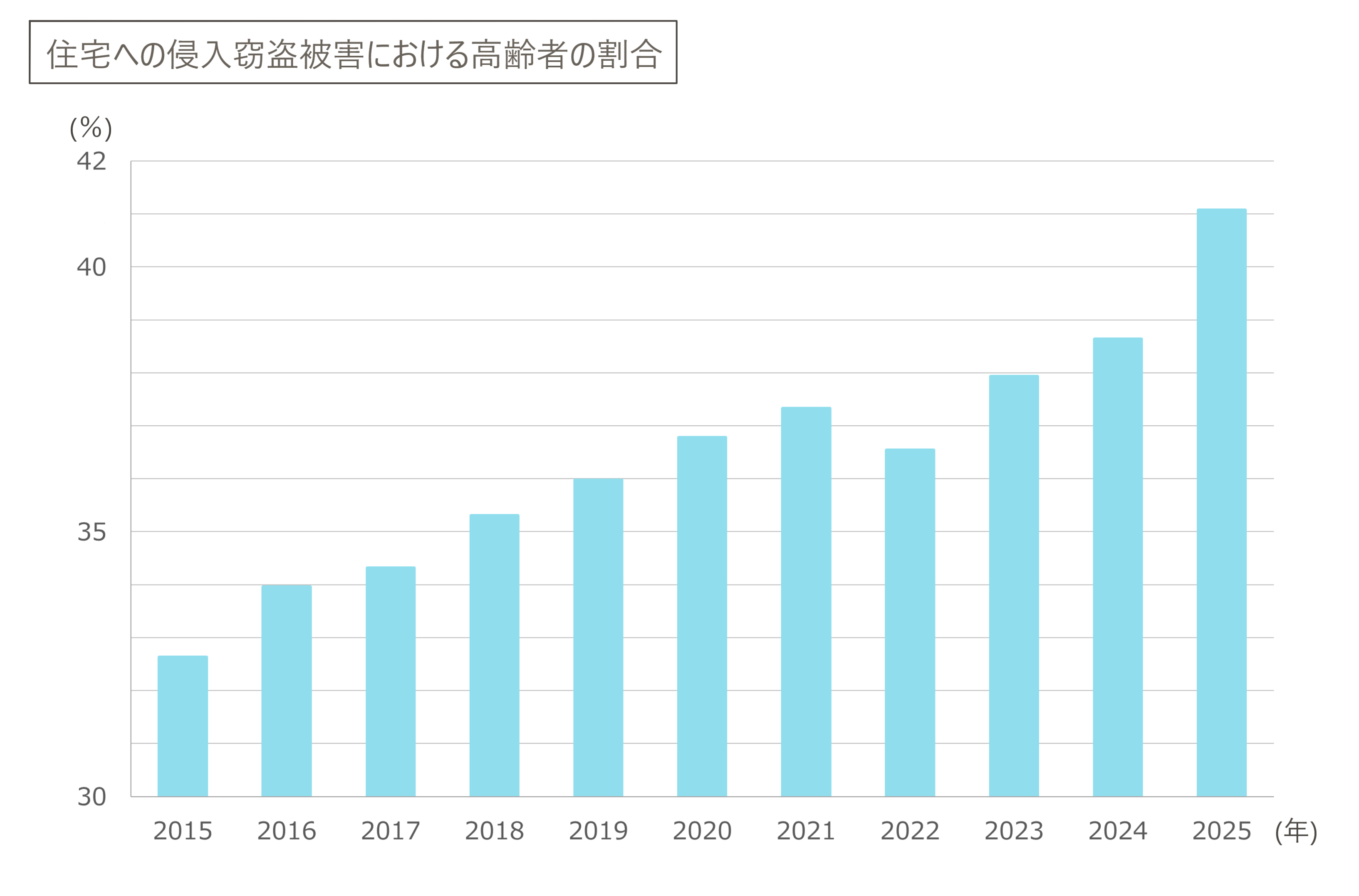 高齢者の犯罪被害としては詐欺に注目が集まりがちですが、侵入窃盗についても近年、見過ごせない値になってきていると言えそうです。