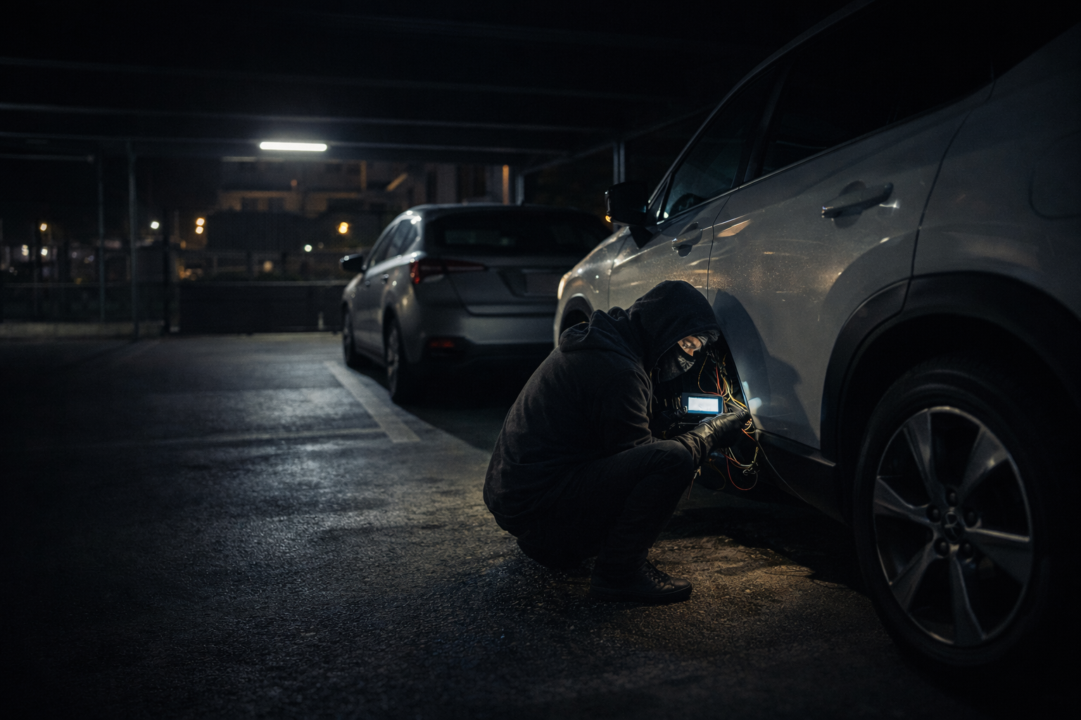 男は車体内部の配線へ専用機器を接続していたのです。